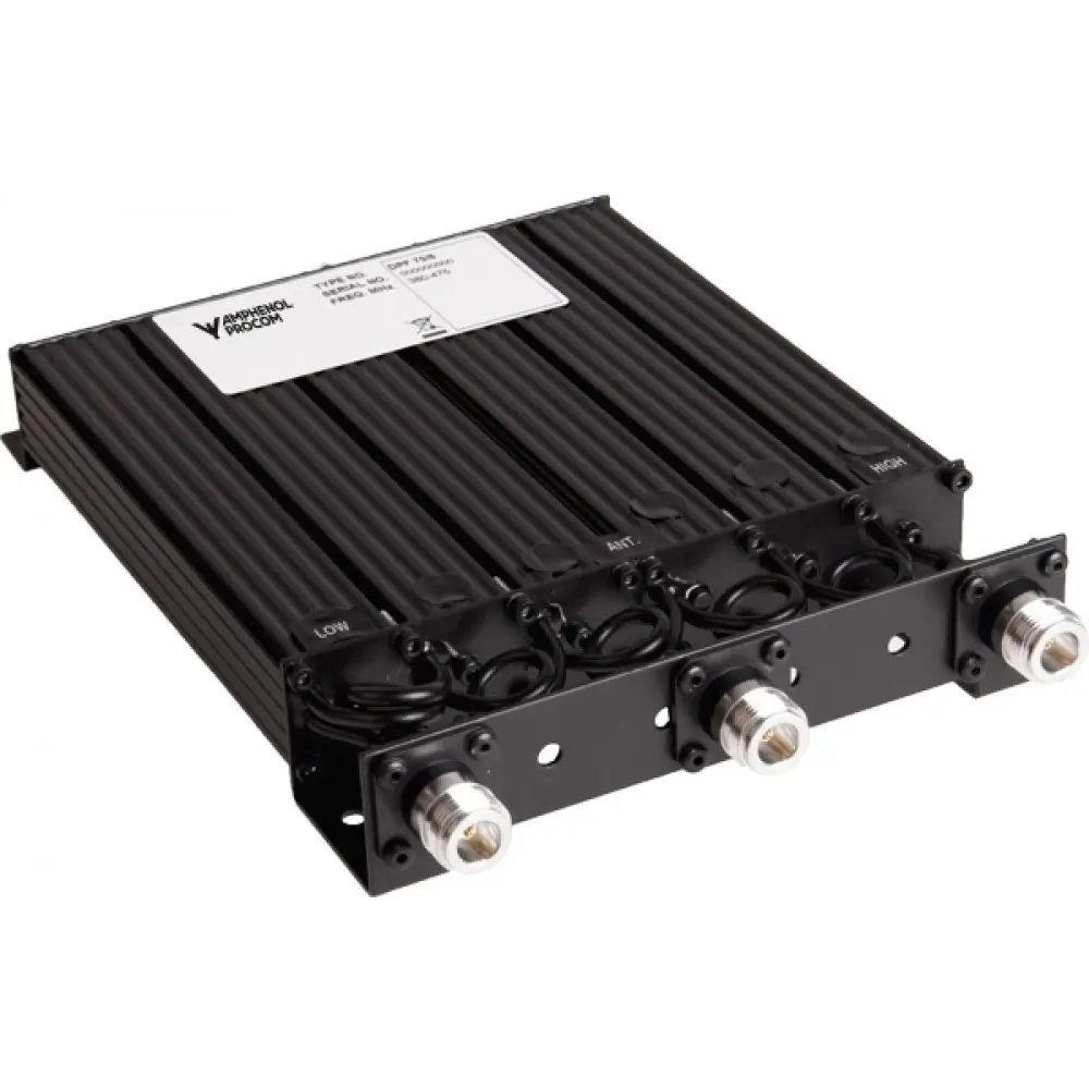 Amphenol Procom DPF 70/6 termasuk sebagai filter duplexer berkualitas tinggi untuk mendukung kinerja radio komunikasi dua arah. Duplexer ini membuat satu antena digunakan untuk transmisi (Tx) dan penerimaan (Rx) sekaligus tanpa gangguan sinyal.